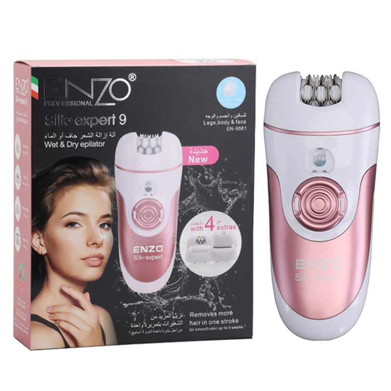 ⚡ Enzo Silk Expert 9561 – إزالة الشعر بسرعة وسهولة، 4 رؤوس متعددة، بطارية قابلة للشحن، نتائج ناعمة واحترافية في المنزل أو أثناء السفر 🌸💖
